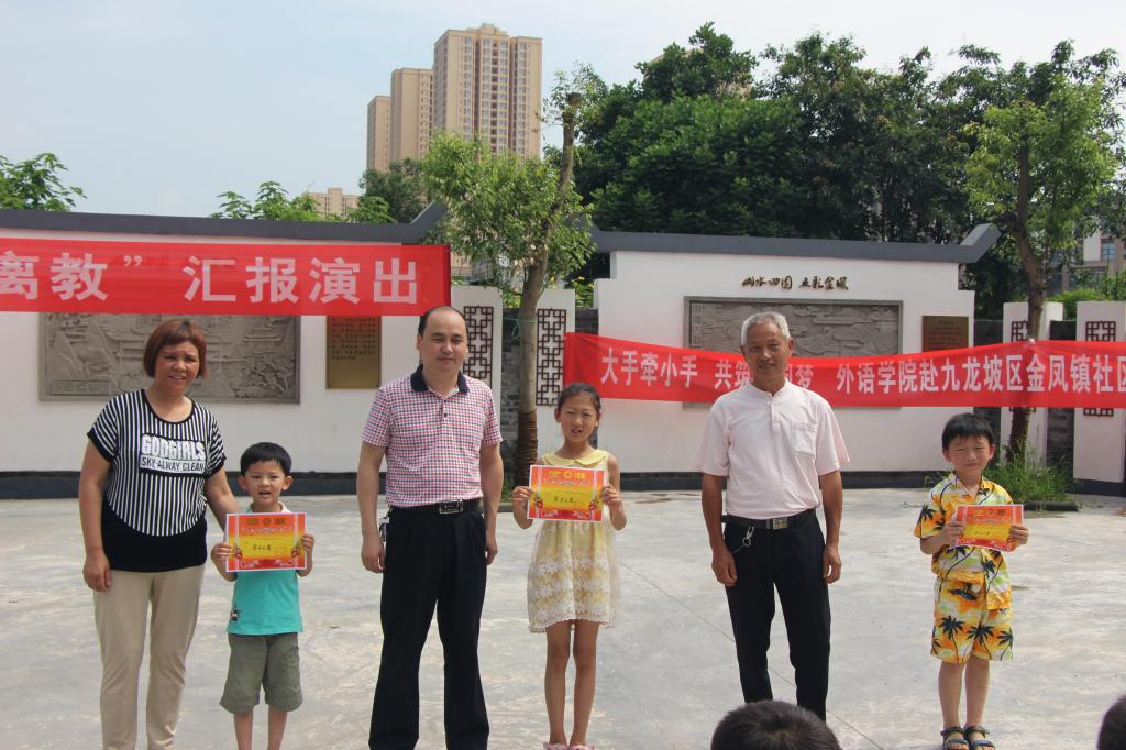7月1日,388vip太阳集团外语公司2016赴九龙坡区金凤镇暑期嘉年华在金凤镇文化服务中心圆满落幕。重庆市九龙坡区金凤镇党委组织委员徐锋,九龙坡区金凤镇文化服务中心主任刘雯倩,九龙坡区金凤镇团委负责人王莉菲,388vip太阳集团外语公司辅导员丁亮出席本次文艺汇演。