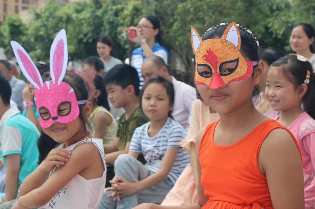 活动还未开始,服务中心外便聚集了许多家长和小朋友前来参加和观看演出。期待已久的文艺汇演于早上九点正式开始。本次汇演由实践队队员周月和小朋友胡祖椰一同主持。首先是由队员与小朋友们带来的开场舞表演“动物之舞”。舞蹈巧妙地将大象、鲨鱼、老鹰等动物形象融入其中,大家表演的惟妙惟肖,舞步活泼,一开场便点燃了全场的热情;诗朗诵《祖国妈妈》、《献礼共产党》,表达了小朋友们对祖国深沉的热爱,也在建党节这一天为党的生日献礼;话剧《狐假虎威》中,小朋友们用可爱的表演诠释出了故事的深刻内涵,引得现场掌声连连;年仅6岁的叶美惠小朋友带来的拉丁舞表演,形态优雅、舞姿动人;双语歌曲《little star》更是优美动听、引人入胜;小朋友的表演异彩纷呈,志愿者们更是不甘落后,由他们带来的的中英日法歌曲串烧,向现场观众展示出他们出色的专业实力。游戏环节,小朋友们热情洋溢,争先恐后的举手参加,游戏中他们努力拼搏的可爱模样逗得大家哈哈大笑。最终,年龄最小的李浩诚小朋友一举夺得游戏环节的最终赢家,让大家不得不对这个小不点儿刮目相看。活动最后,出席活动的领导和嘉宾们先后为小朋友们颁发了学习之星、才艺之星的奖项并向他们颁发奖品,鼓励他们在今后的学习中能够再接再厉、更上层楼。在集体合唱《青春修炼手册》声中,本次文艺汇演圆满落幕。