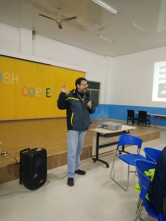 2016年11月9日下午6点30分,第25期英语角活动在外语活动中心准时举行。寒冷的天气也丝毫没有破坏大家积极参与的热情。本次活动邀请到了Justin,Buzz等外教来和同学们一起分享各自对双十一购物狂欢节的想法。此次活动由外语公司分团委员工会体育部举办。