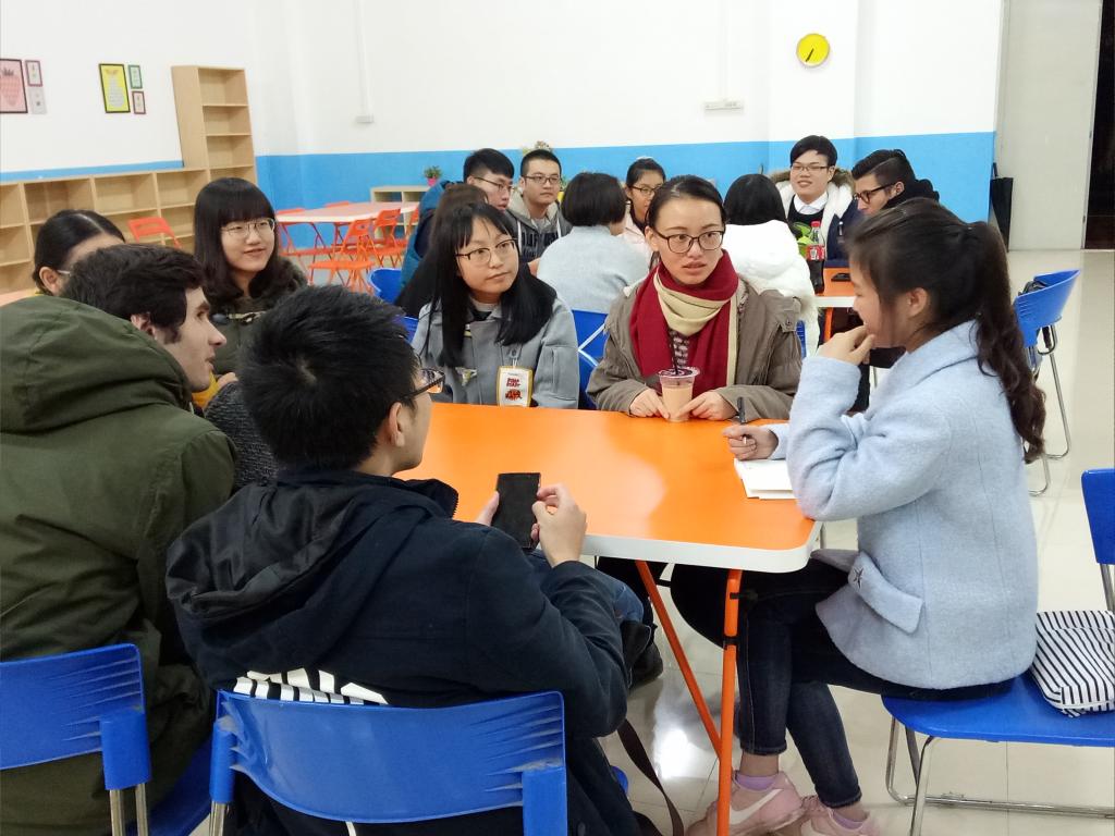 2016年12月7日晚六点三十分,第28期英语角在南岸校区外语活动中心顺利举办。本次活动由外语公司分团委员工会组织部主办,素拓部协办。外教Justin,Buzz,Sam与来自全校的英语爱好者共同参与了本次主题“Super stars and super fans”的讨论。