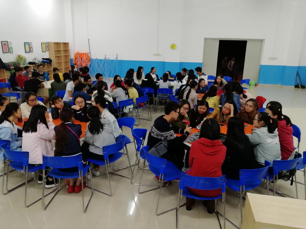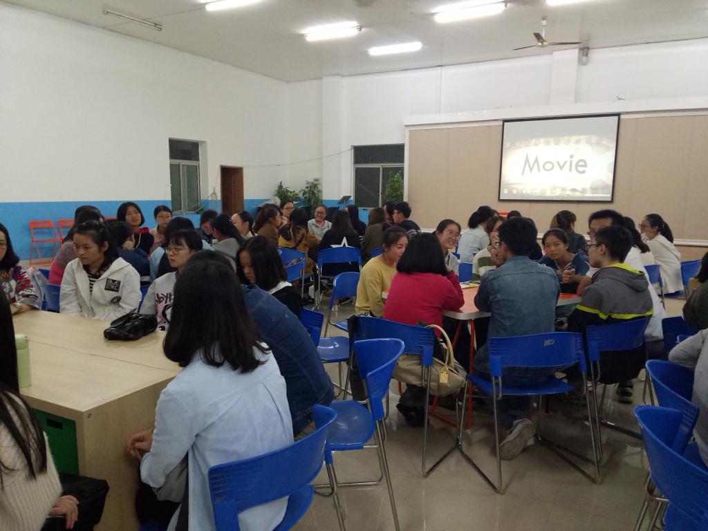 本次英语角的主题为电影分享,活动吸引了众多同学前来参加。在主持人简短的开场过后,Brittany老师首先与同学们分享了自己喜欢的电影并讲述了她对这部电影的理解,绘声绘色的分享更激起了同学们对这个话题的兴趣。随后全场便进入了Free talk环节,同学们和外教一起交流了关于电影的问题,讲到赞同点时总会激动万分。或许是由于大多人将电影的欣赏当作了心灵流浪时的一小块栖息地,所以大家都纷纷分享出了自己所爱的那部电影,气氛十分热烈。时光在欢乐时总是行色匆匆,指针转动,活动已然结束。值得一提的是,虽然活动已经结束,但仍有部分同学依然沉浸在此次英语角活动欢乐的气氛中,继续讨论了一会儿,才意犹未尽地离开。
