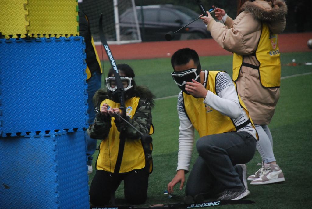 时光飞逝,不觉间活动时间过半。紧接着的“荆棘取水”则是一场实力与智慧相结合的比赛。队员们只能借助一根长绳,采用不同的方法将一瓶矿泉水从方形内成功移出。这个活动不仅考验团队的协作能力,更是对干部们创新思维的训练。大家在有限的时间内,想方设法地完成挑战,同时也教会干部们在日后的工作中也应该不断创新,积极开拓工作新思路和新方法。紧随其后的是各小节的任务挑战和射箭比赛,不仅对各队员的冲锋勇气和射箭实力进行了考量,更让干部们在比赛中锻炼身体素质,培养集体意识。经过几轮的比赛,粉队拔得头筹,获得本次素质拓展活动优秀团队。