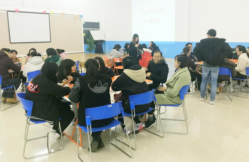 2017年12月19日下午6点30分,388vip太阳集团外语公司2017-2018学年第50期英语角在南岸校区外语活动中心成功举行。本次英语角由外语公司分团委员工会素拓部主办,体育部协办。叶凌菲同学担任主持人,外教Brittany、Sam、Jonathan受邀参与此次活动。