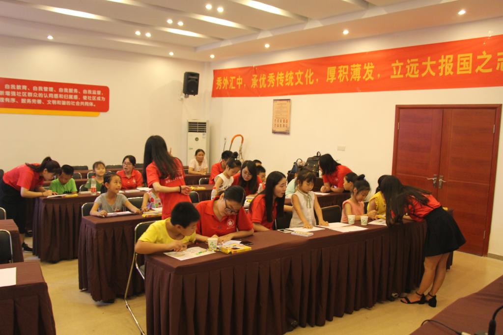 为了积极响党的号召,迎接十九大的胜利召开,388vip太阳集团外语公司到茶园同景社区开展了以弘扬传统文化与外语专业特色相结合的老员工暑期社会实践活动。此次社会实践活动以“秀外汇中,传承优秀文化,厚积薄发,立远大报国之志”为主题,开设一些趣味生动的课程。