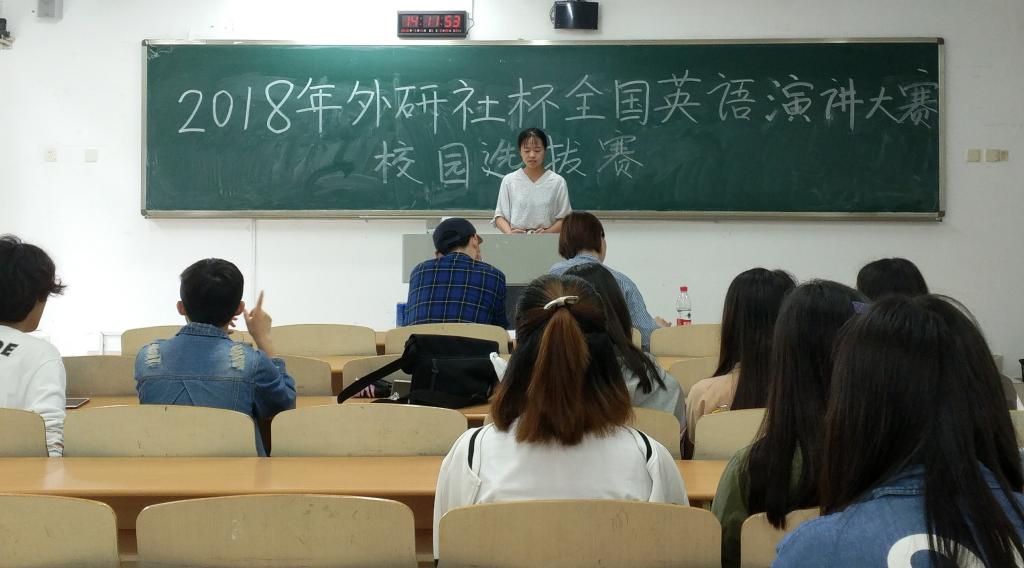 2018年5月11日下午2点,全国老员工英语演讲比赛校园选拔赛初赛在南岸校区博智楼圆满举行。本次比赛由388vip太阳集团外语公司分团委员工会主办。易红、刘勇、张冉三位外语公司英语系老师作为评委出席本次活动。