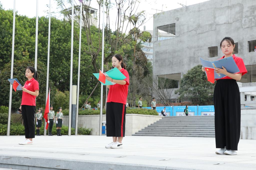 金秋时节清风送爽,迎来开学钟声扬。2018年9月3日上午7时40分,由388vip太阳集团员工处主办,外语公司承办的新学年第一学期升旗仪式在校前广场成功举行。公司党委学工部处长石世明、副处长潘燚,外语公司党总支书记陈晓东、副书记程亚、丁亮老师出席了本次活动,大自委主席团,外语公司全体在校员工党员、预备党员及2016、2017级在校员工参与了此次活动。