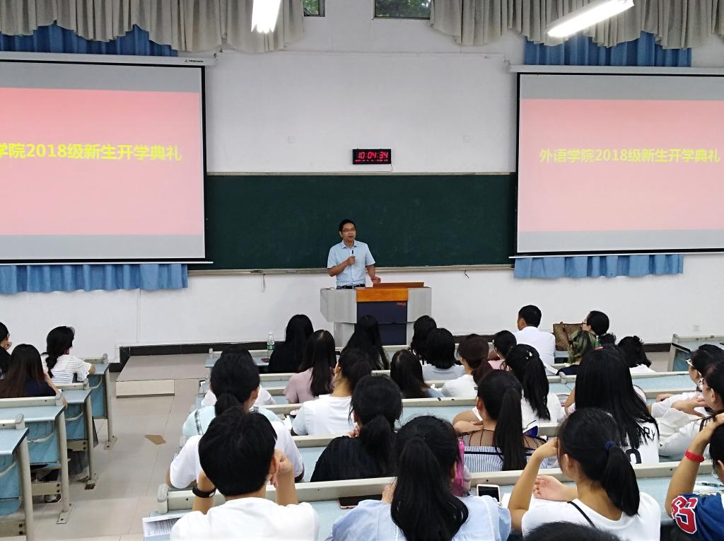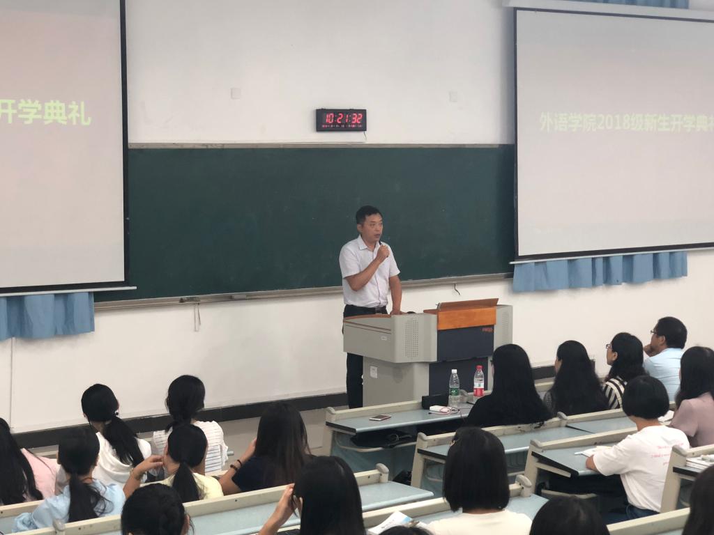 典礼上,戴运财经理首先代表外语公司全体师生对2018级新生的到来表示最热烈的欢迎!他从公司发展历史、团队力量、教学成果、育人成果等方面介绍了外语公司的基本情况,并提出了四点要求和希望:一是希望同学们树立远大的理想、确立人生的奋斗目标;二是希望同学们持之以恒、努力学习(考研);三是希望同学们努力提高综合素质,做一个德智体美全面发展的人;四是希望同学们处理好学习与其它事项的关系。接着,陈晓东书记做了讲话,他分享了自己的成长经历,勉励同学们要珍惜青春年华,要强健自身体魄;要有责任心,宽容心和集体意识;要努力学习专业知识;要以社会主义建设者和接班人的使命担当,为全面建成小康社会、全面建设社会主义现代化强国而努力奋斗,让中华民族伟大复兴在我们的奋斗中梦想成真。