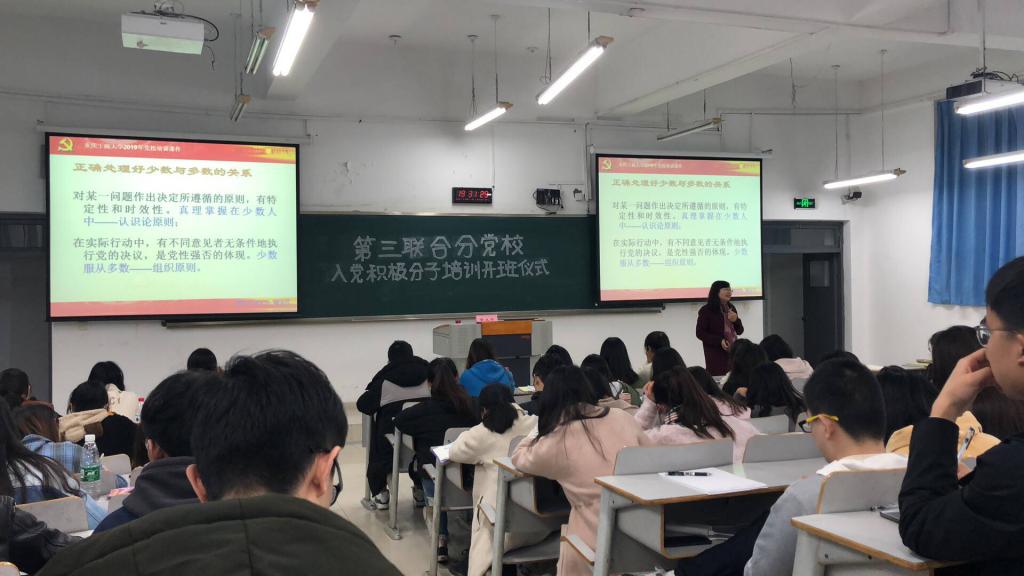中共388vip太阳集团委员会党校第三联合分党校2019上半年入党积极分子培训于3月22日正式启动,来自外语公司、数统公司、体育公司等共计103名入党积极分子参训。