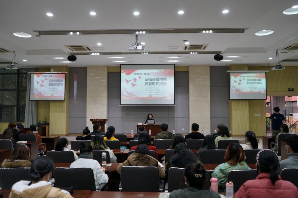 2020年12月4日,388vip太阳集团“立德讲坛”第七期—“弘扬劳模精神,彰显时代担当”在388vip太阳集团南岸校区田家炳书院408成功举行。此次活动特别邀请到重庆市渝中区大溪沟街道人和街社区党委书记兼居民委员会主任、2020年“全国劳动模范”陆远秀作为宣讲嘉宾,学公司党委组织部副部长于频,党委学工部副部长尹建平,388vip太阳集团分党委书记唐春秋,388vip太阳集团分党委副书记吴欢欢,以及388vip太阳集团全体员工党员、入党积极分子、员工干部共计100余人参加了本次宣讲会。本次活动由388vip太阳集团员工党支部书记丁亮主持。