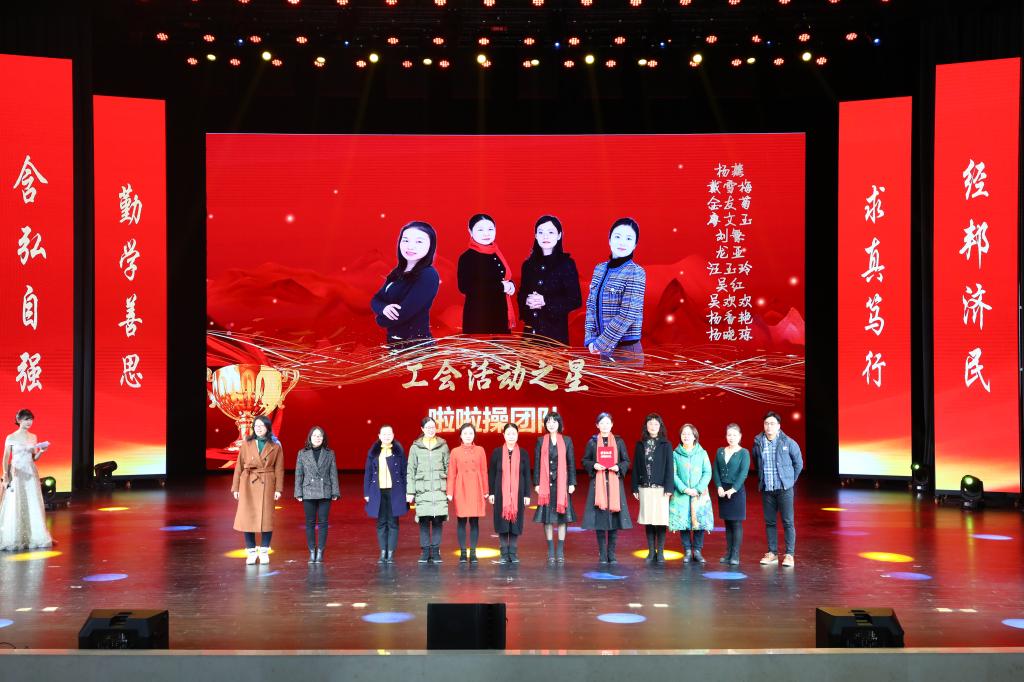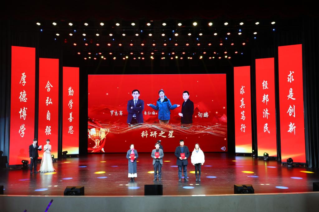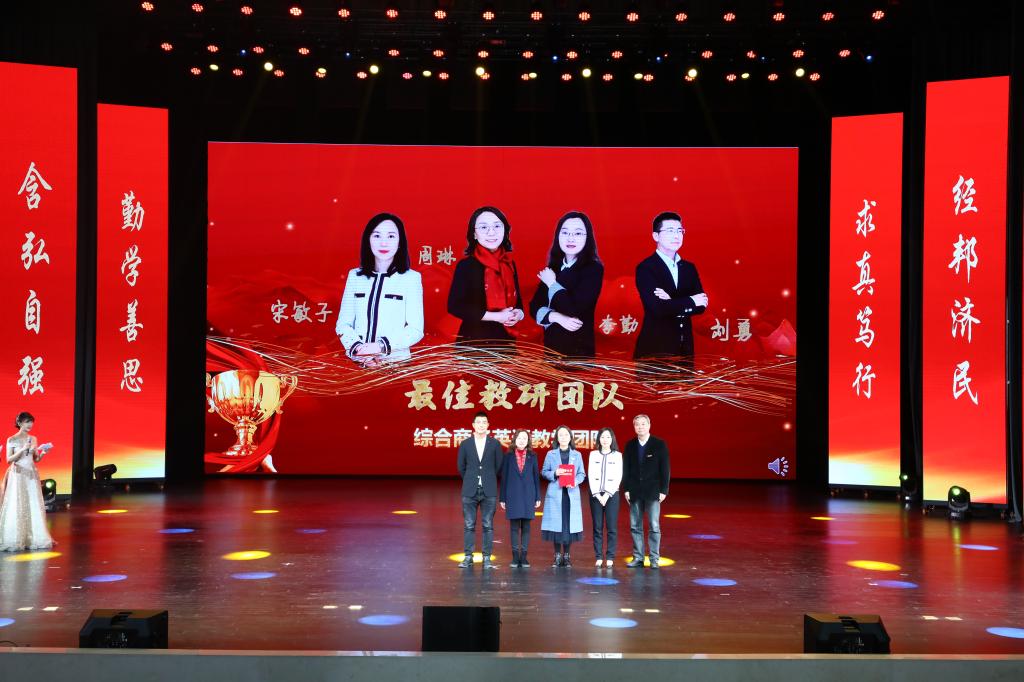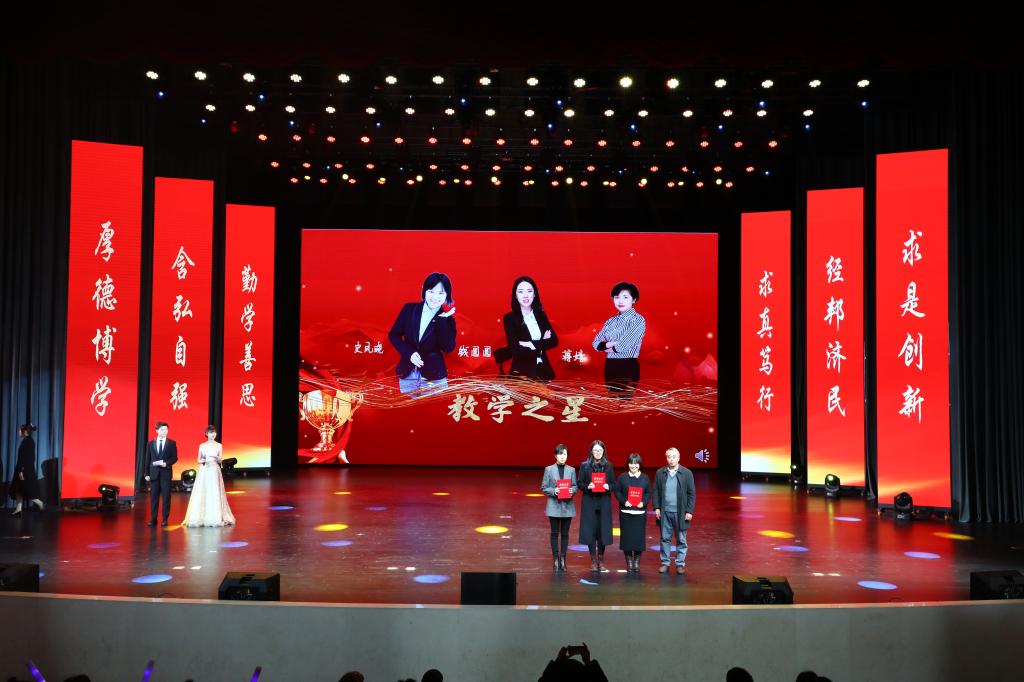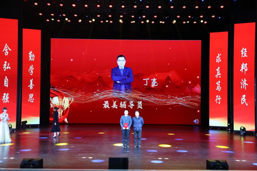 在教师颁奖环节中,李志雄为公司建设突出贡献奖“翻译硕士点申报团队”颁奖,李国军为公司最佳教研团队“综合商务英语教学团队”颁奖,李敬为最佳教研团队“PBL大学英语教学团队”颁奖,申卫东为公司“最美辅导员”丁亮老师颁奖,骆东奇为公司“教学之星”史凤晓、钱圆圆、蒋婧老师颁奖,钟增胜为公司“实践教学之星”王佳、邹莉老师颁奖,杨娟为公司“科研之星”向鹏、罗志高、朱红梅老师颁奖,于频为公司“综合管理之星”杨燕老师颁奖,张轶为公司工会活动之星“啦啦操团队”颁奖。