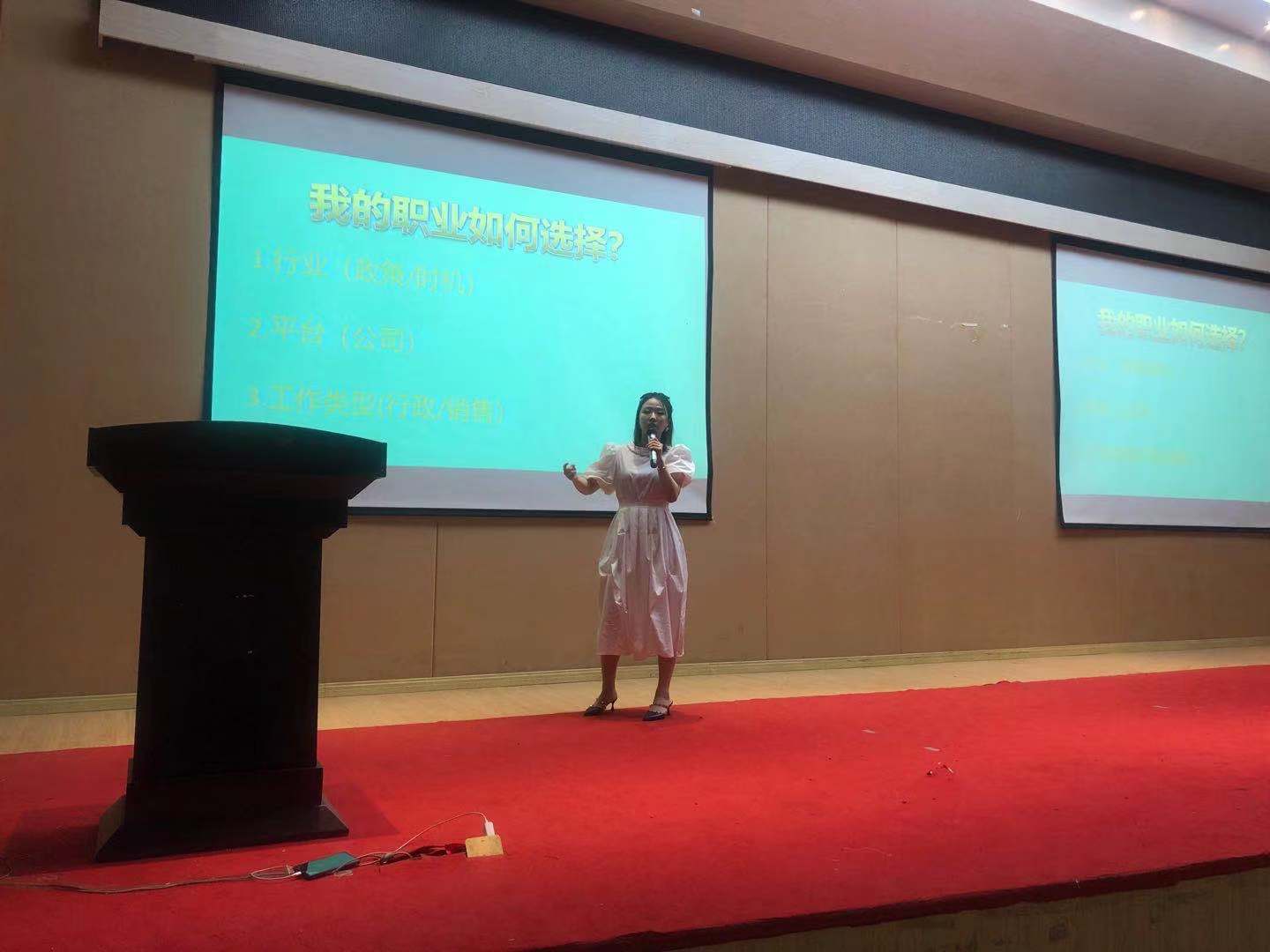 员工代表2020届毕业生刘婷娴和2014届毕业生陈景华受邀分享就业心得。刘婷娴对在校毕业生提出了两点建议:1.能吃苦,学会忍耐;2.选择适合自己且有成长空间的工作;随后,2014届毕业生陈景华学长也通过线上方式分享了他的就业经验,提醒同学们树立正确的择业观、就业观,根据自身情况,努力发挥自己的才能,学无止境,热爱工作和生活,做出有利于国家和社会的事情。