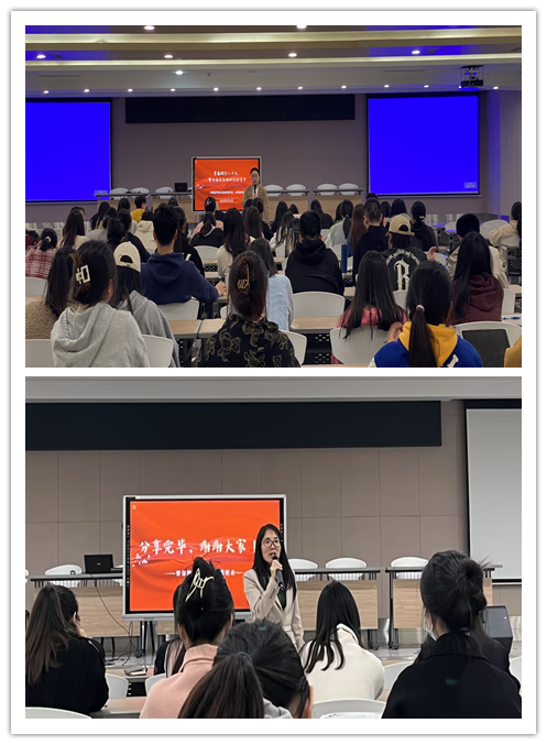 董事长荣誉奖获得者19商务英语一班张素瑞及签约中咨工程有限公司西南分公司(驻渝央企)19商务英语一班王仁伟同学进行了成长经历分享。张素瑞说到:“少年二字,应与平庸相斥,要在有限的人生里创造无限的可能。只要坚持,没有什么是不可能的,这句话听起来很鸡汤,但是其实热爱是天赋,坚持便是让天赋有用武之地的磨刀石。”王仁伟勉励学弟学妹:“凡事预则立,不预则废。希望学弟学妹们不断加强专业知识学习,提高专业成绩,为自己争取获得更多荣誉,确保自己在今后无论是寻找工作还是考研过程中都能够有底气、有实力。”