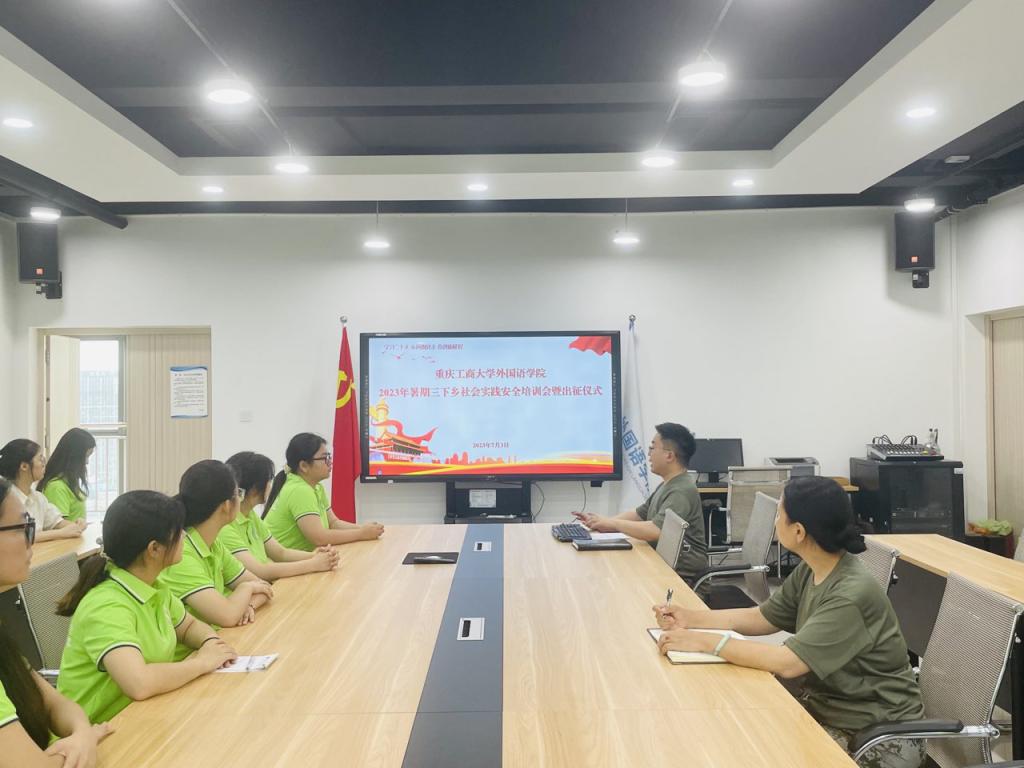 为引领广大青年在实践中深入开展习近平新时代中国特色社会主义思想主题教育活动,全面贯彻落实党的二十大精神,鼓励青年员工把理论学习和社会实践紧密结合,在与实践相结合的“大思政课”中受教育、长才干、作贡献,2023年7月3日下午,388vip太阳集团在涵智楼1216会议室举办了2023年暑期“三下乡”社会实践安全培训会暨出征仪式。388vip太阳集团党委副书记吴欢欢、分团委书记周利民及各实践团成员出席大会。会议由周利民主持。