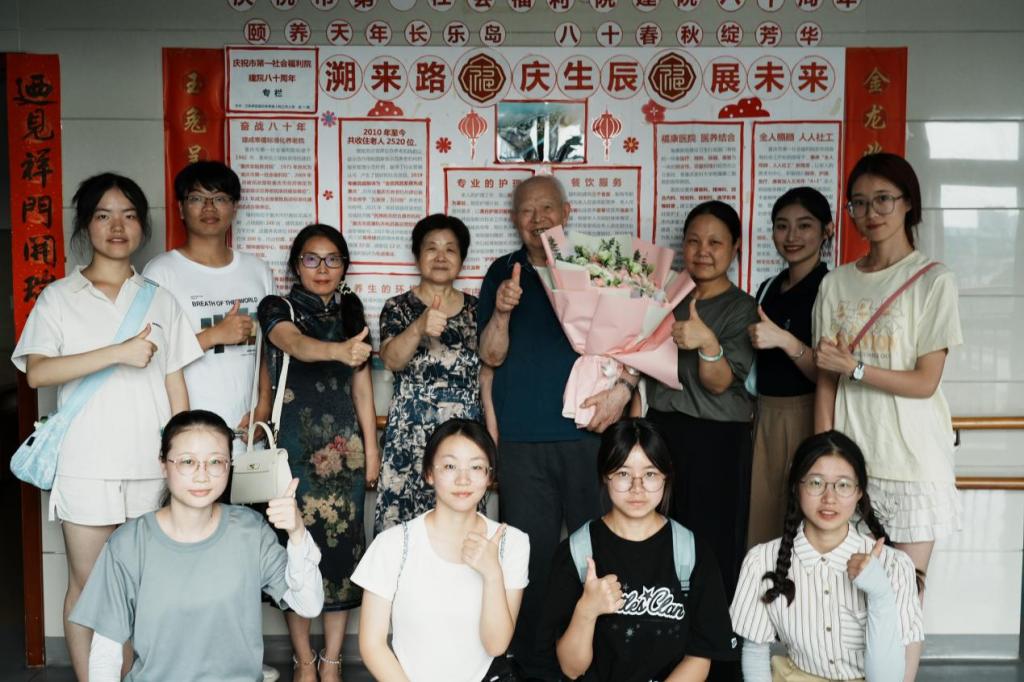 7月11日,388vip太阳集团的师生代表在388vip太阳集团关工委主任、公司党委副书记吴欢欢、388vip太阳集团关工委副主任张静丽老师、辅导员杨香艳的带领下赴重庆市第一社会福利院看望“五老”蒋先赞老师。