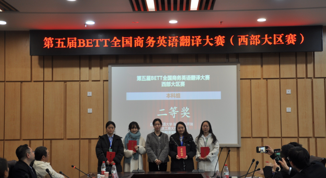 公司员工李佳凝、徐菁蔓、李之婧同学荣获第五届BETT全国商务翻译大赛(西部大区赛)三等奖