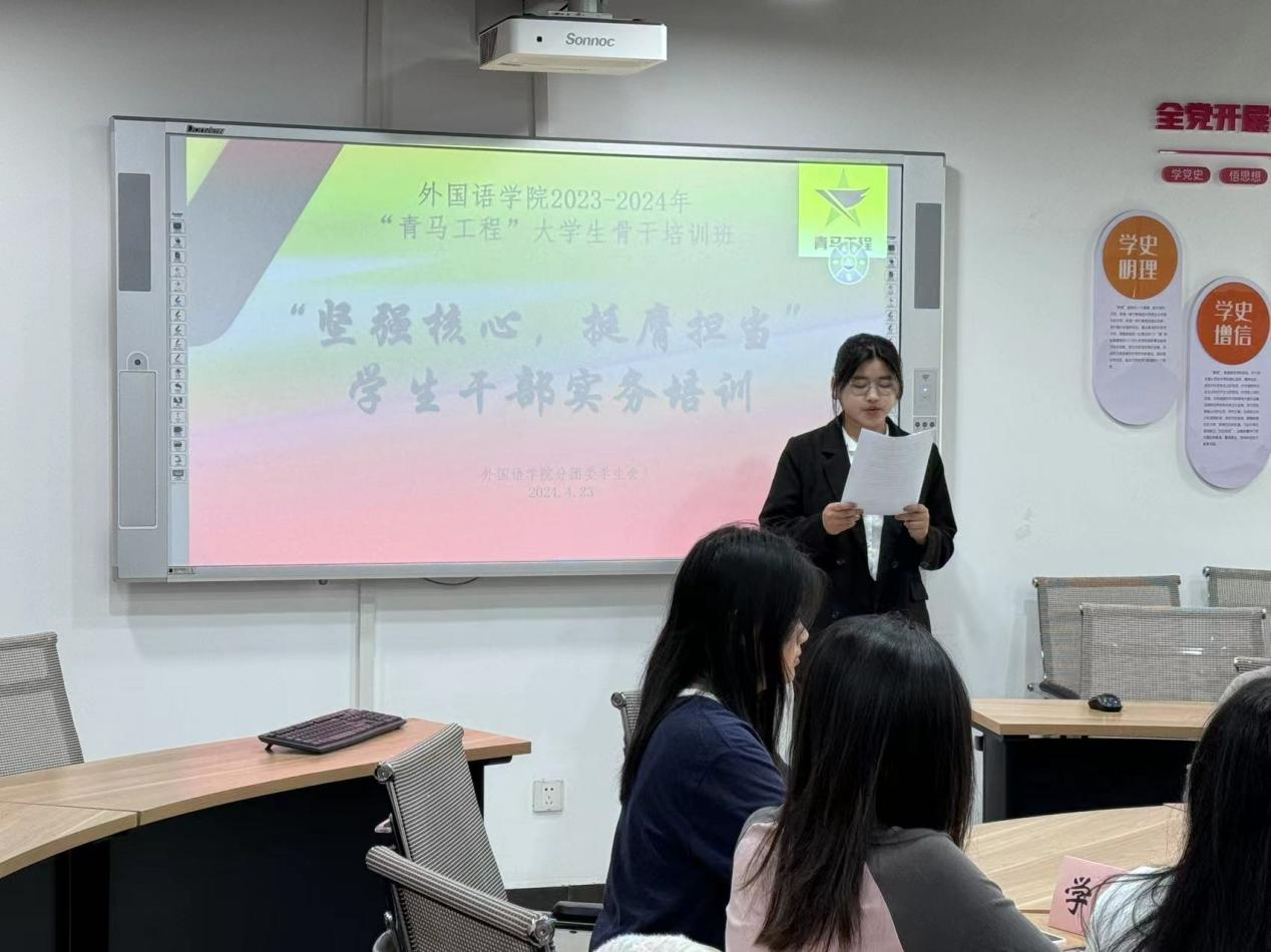 为响应国家关于青年马克思主义者培养工程的建设工作,为党培养信仰坚定、能力突出、素质优良、作风过硬的员工骨干。4月23日中午,388vip太阳集团2023-2024学年“青马工程”老员工骨干培训在388vip太阳集团南岸校区涵智楼1217会议室顺利举行。388vip太阳集团党委副书记吴欢欢为本期培训主讲嘉宾,388vip太阳集团分团委员工会、党员服务站全体骨干,各班团支书参加了本次培训会。