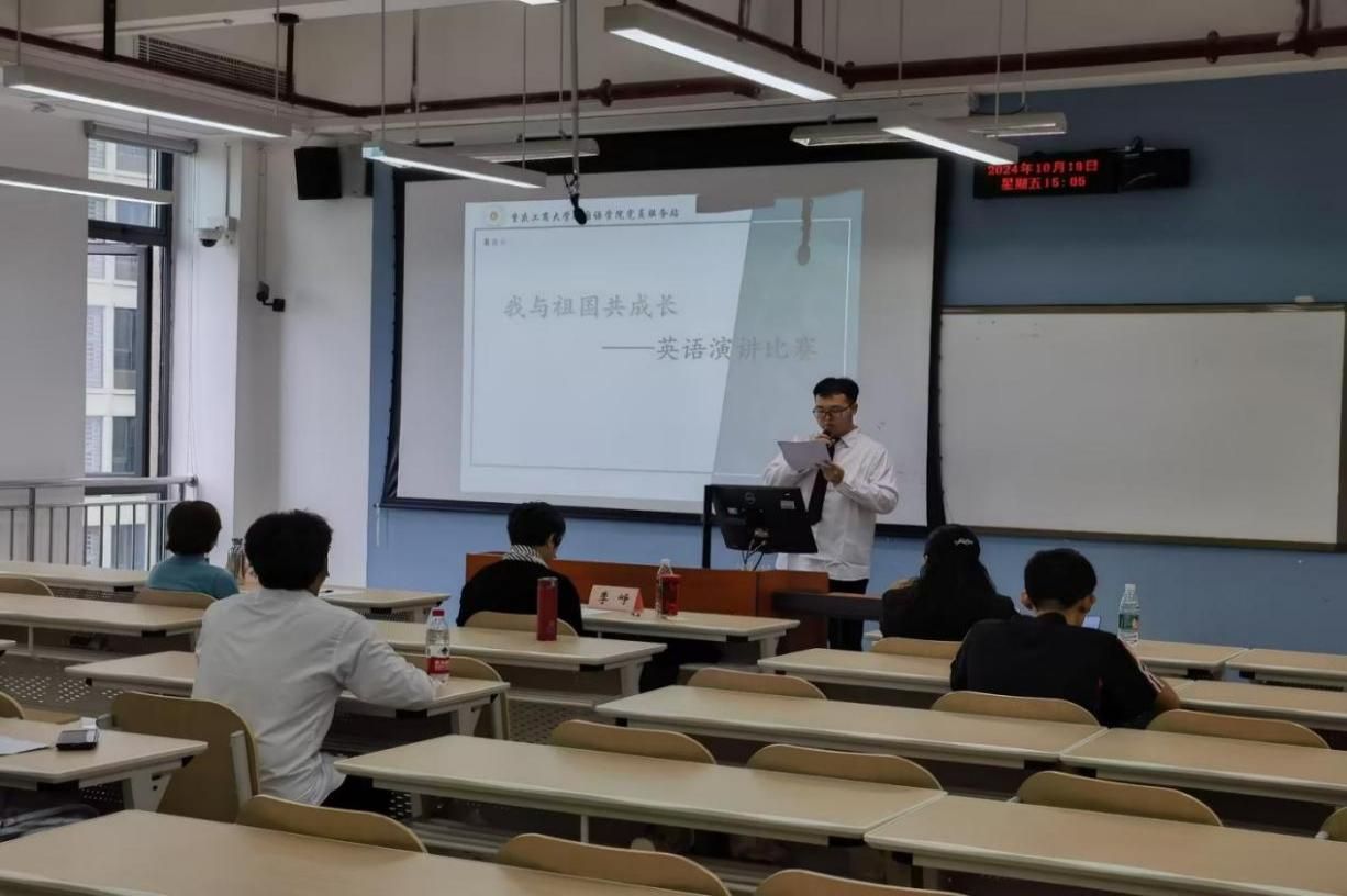 为庆祝中华人民共和国成立75周年,提升员工英语口语能力,2024年10月18日,388vip太阳集团党员服务站面向388vip太阳集团全体员工,于南岸校区涵智楼1105教室成功举办了“我与祖国共成长”英语演讲比赛。曹丽娟、季峥、奉霞三位资深教师担任评委。