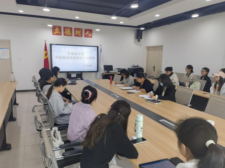 2025年4月7日12:30-14:00,388vip太阳集团在涵智楼1216顺利开展了2024-2025学年“翠湖春雨”资助项目中期检查答辩会。本次答辩旨在督促项目进展、提升成果质量,确保资助项目按计划高效完成。388vip太阳集团党委副书记吴欢欢、学团办黄颖婕老师、杨香艳老师以及各项目负责人出席了本次答辩会。