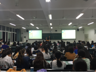 晚上6点30分,随着一段激情澎湃的招新视频,招新活动正式拉开帷幕。员工会与党站通宣部的部长分别担任本次招新大会的主持人,每个部门结合自己精心制作的创意PPT和视频介绍各自的部门工作和用人要求。精彩的介绍和简单的互动后,现场气氛随着新同学们的热情不断升温。党员服务站三位站长朱增艳、陈凤和黎盼对党站进行简略的介绍后,播放的一段关于党站的温馨视频,极大地引起了新生对首次接触的“党员服务站”的浓厚兴趣。党站的招新宣讲会之后是积极报名阶段,紧接着是一个初步面试过程。各部门部长都对报名该部门的新生进行了一些必要问题的询问,也耐心地解答了新生们所提出的疑惑,让他们对本部门有了更多的了解。活动结束后的现场的新生还迟迟不肯离去,围绕在部长和站长旁询问自己的面试结果,从中看出新生们对党员服务站抱有极大的热情与期待。