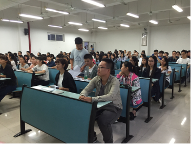 2015年9月17日晚上6点30分,外语公司两老员工组织——党员服务站和员工会,在兰花湖校区20407教室开展了面向2015级新生的招新活动,参与本次活动的有党员服务站、员工会全体成员,以及外语公司2015级全体新生。一年一度的招新活动,旨在为党站的继承发展招贤纳新,挖掘新进人才,为外院的综合发展培养后继新生力量。