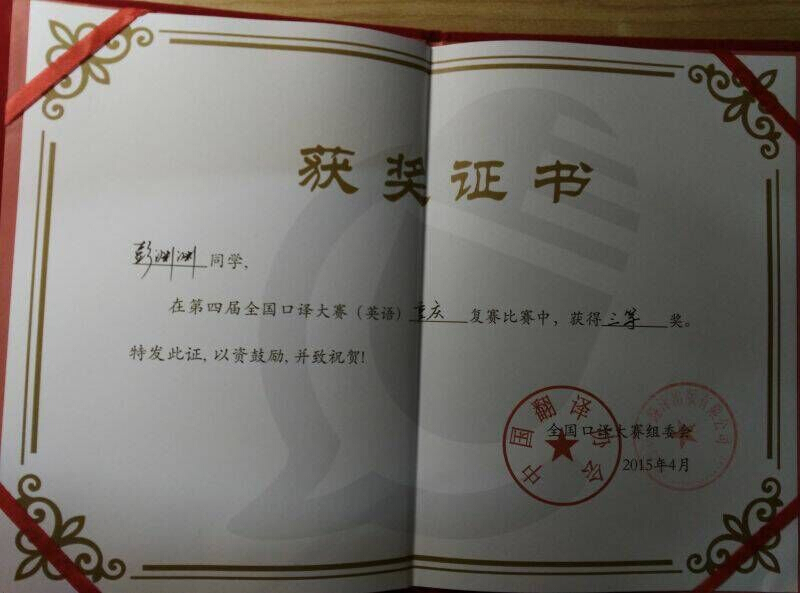 口译队指导老师刘勇老师拥有一级笔译、二级口译证书;对外经济贸易大学中欧高级译员培训中心同声传译证书;西南交通大学外国语言学及应用语言学硕士学位。