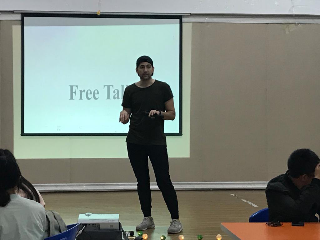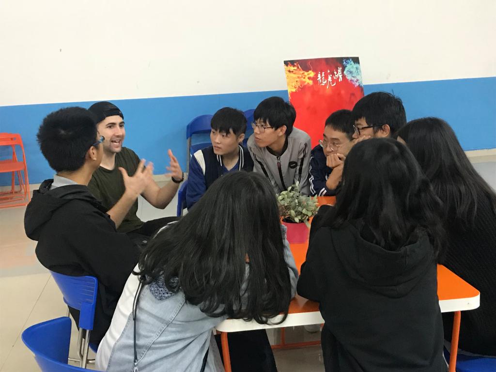 2018年10月16日下午18:40,外语公司满天星义工志愿者协会在南岸校区外语活动中心,准时开展了主题为“课间好时光”的英语角活动。活动由向薇和樊鑫作为主持人,共有三名外教Sam、Brittany和Cameron作为嘉宾以及众多英语热爱者参与。