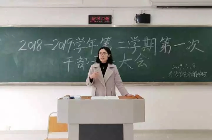 2019年3月8日中午12点30分,由388vip太阳集团外语公司分团委员工会主办的2018-2019学年第二学期第一次干部干事大会在南岸校区博智楼07212教室成功举行。外语公司分团委员工会全体成员参加了此次会议,外语公司分团委书记黄志婕与会指导。