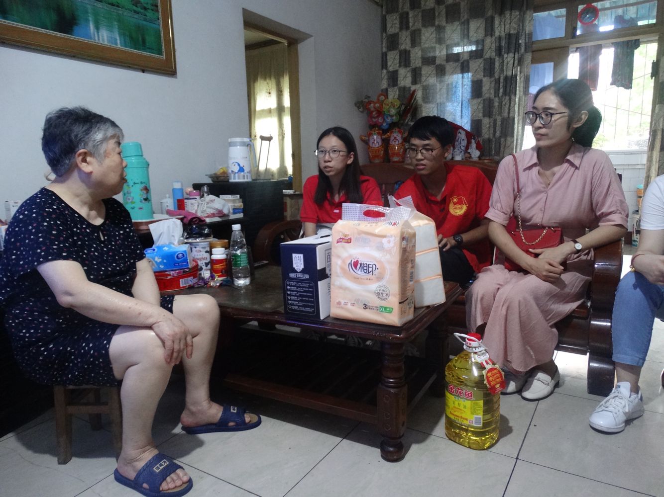 7月11日下午,在社区委员的带领下,外语公司分团委书记黄志婕老师同三名志愿者带着牛奶、纸巾、食用油等生活用品走访慰问了社区个别困难家庭。两位老人都已年过70,年迈体弱,依靠着自己的退休工资和政府补贴抚养着刚满9岁的孙女,爷爷更是腿脚不便,所以家里的奶奶承担了大部分的生活压力。看到志愿者们的到来,老人们很激动,热情地把志愿者们招呼进屋,志愿者们热情地陪着老人聊家常,询问他们的困难,奶奶主动向志愿者们分享了爷爷的参军经历,大家还一起畅聊社会新风尚,其乐融融。在走访慰问了困难群众后,在社区工作人员的带领下,志愿者带着小朋友们开始清洁社区街道,小朋友们都穿着整齐划一的社区志愿服务红马甲,手拿垃圾袋,穿梭在绿化丛间,在社区街道中形成了一道优美的风景线。熟悉社区街道后,志愿者们分组到社区中关爱空巢老人,与老人聊天谈心,使独居老人们感受到了社会大家庭的和谐与美好。