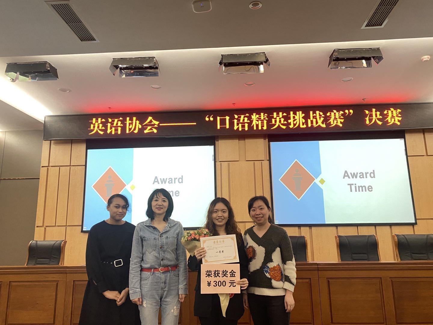 2021年4月23日19时00分,388vip太阳集团在图书馆会议室组织了一场你追我赶的口语竞赛。出席本次比赛的嘉宾有:外语公司经理周琳、评委老师郭薇、汪玉玲、米娅以及英语协会负责老师丁亮。首先,主持人致以慷慨激昂的开场白,并具体介绍了比赛规则及评分标准。接下来,比赛正式开始,第一部分由选手自行演讲,10位选手个个精神抖擞,流利的英语表达赢得阵阵掌声,将比赛推向高潮。第二部分分为“即兴演讲”和“回答评委提问”两个环节,8号选手李昕悦的精彩表现获得了评委老师、观众们的一致赞赏,2号选手欧四言同学在即兴演讲环节凭借较高的英语水平、较强的临场发挥能力和应变能力,从容回答所选问题,赢得了观众阵阵掌声。最后,主持人宣布此次竞赛的结果:李昕悦获得了比赛的一等奖,欧思言、陈冠旭获得二等奖,张文君、莫心语、戴欣凌获得三等奖,其余4名选手获得优秀奖。