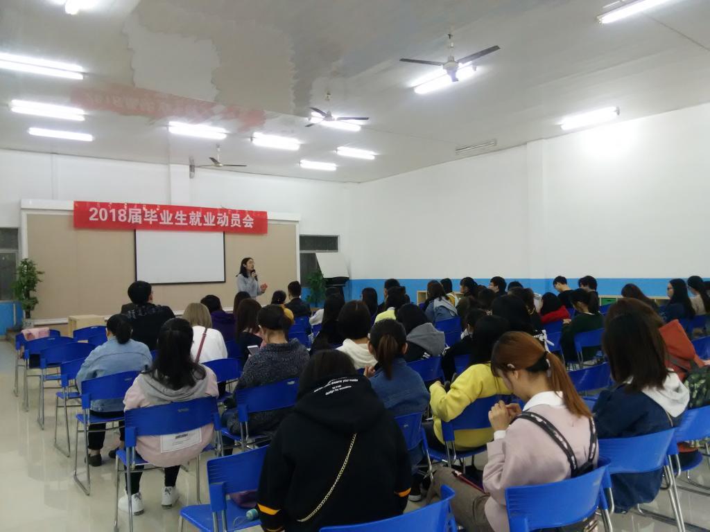 本次会议主要围绕2018届外语公司毕业生的毕业事宜、就业动员两方面展开。周琳经理作为今日主讲人之一,干脆利落直奔主题。首先和同学们分析了毕业所需的必要条件,接着又以时间为轴线向同学们一一分析了毕业论文进程和实习就业的时间节点,层次分明、条理清晰。现场的同学们都认真记录,及时提出疑问。随后,陈书记首先向同学们分析了2018届毕业生的就业形势,希望同学们能够清楚自己的定位;接着以2017届毕业生为例从三个方面分析了出现有同学迟迟无法就业的原因:准备不充分,简历没有特色;缺乏自信,觉得自身与其他同学存在差距;犹豫不决,总觉得会有更好的企业等着自己。针对以上问题陈晓东书记都分别提出了意见和建议。除此之外,书记还贴心地提醒同学们目前是找工作的黄金阶段,希望同学们能够规避以上问题,早日找到自己满意的工作。书记仔细的分析、切实的建议赢得了现场同学们的热烈掌声。黄志婕老师作为本次会议的主持,在最后不仅对陈书记以及周经理的讲话做了总结,也提出自己的建议,对同学们寄予了美好的祝愿。