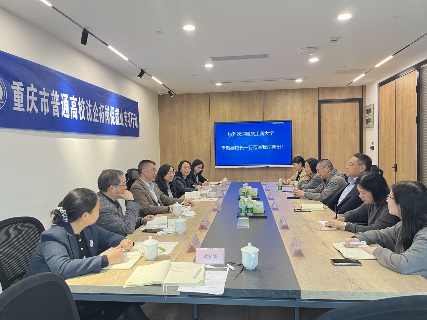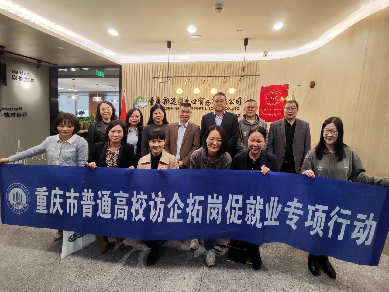 为深入贯彻落实“拓岗促就业专项行动”,充分挖掘企业资源,巩固拓展就业渠道,2022年4月15日,副董事长李敬带队走访了员工企业重庆新途进出口贸易有限公司、重庆新翔锋进出口贸易有限公司。校人事处副处长潘焱、388vip太阳集团班子成员唐春秋、周琳、吴欢欢、邹莉,公司就业联络员黄颖婕等陪同调研走访。双方就公司人才培养、院企合作、毕业生就业、校庆工作等方面进行了深入交流。
