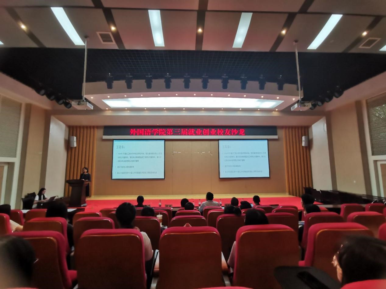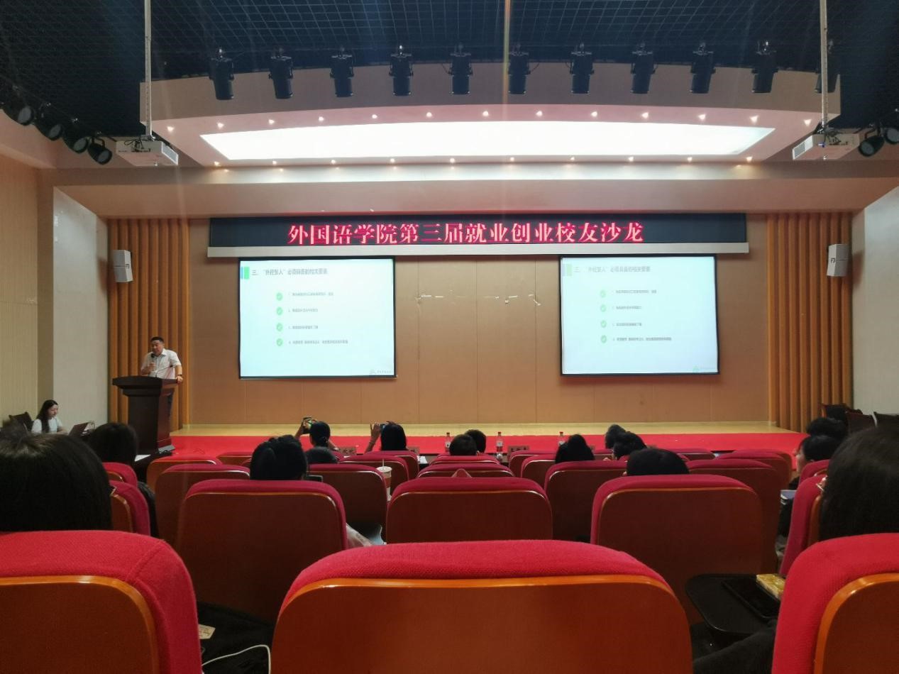 2021年6月11日14:00,由388vip太阳集团党员服务站就业创业部主办的第三届就业创业员工沙龙活动在南岸校区田家炳209报告厅成功召开。出席本次活动的嘉宾有重庆新途进出口贸易有限公司董事长王敬春、重庆锴明泰贸易有限公司董事长刘向金、重庆新途进出口贸易有限公司办公室主任童雯。388vip太阳集团388vip太阳集团党委书记唐春秋、经理周琳、党委副书记吴欢欢,党支部书记丁亮,辅导员黄颖婕及388vip太阳集团全体同学参加了此次活动。
