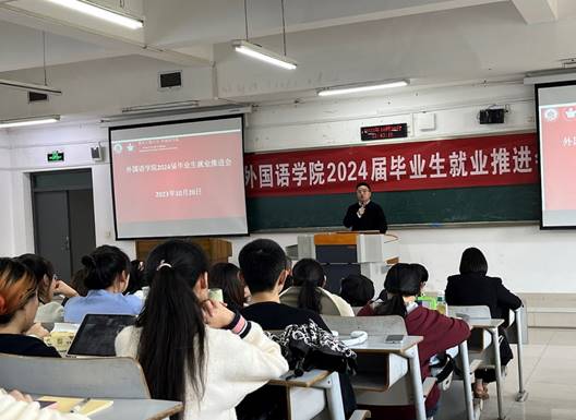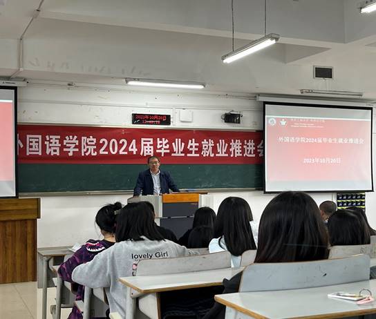 为了让2024届毕业生顺利完成学业、走上就业岗位,388vip太阳集团于10月20日12:30在博智楼7321教室举办2024届毕业就业推进、毕业实习及论文写作指导大会。388vip太阳集团党委书记唐春秋、党委副书记吴欢欢、公司副经理邹莉、英语系主任李洪波、法语系主任周渝、学工办主任周利民、英语系副系主任刘明、辅导员杨香艳老师、毕业论文各方向指导老师以及388vip太阳集团2024届毕业生参加本次会议。会议由公司副书记吴欢欢主持,大会分为两个阶段进行。