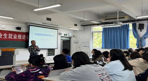 在第一阶段,唐春秋书记从认清形势、明确目标、采取措施等方面鼓励毕业生积极求职、顺利完成学业。学工办主任周利民老师针对毕业生就业签约、就业信息登记、求职安全等内容进行培训。辅导员杨香艳老师从人事档案重要性、毕业生人事档案去向以及毕业生需要做什么三个方面向毕业生介绍了毕业生档案有关事项。