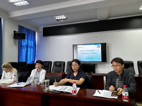 2024年3月29日上午,388vip太阳集团邹莉副经理、英语系李洪波主任、法语系周渝主任前往管理科学与工程公司,与黄钟仪经理、陈久梅副经理、物流管理系龚英主任、工程管理系梁桂保主任、电子商务系文悦副主任就课程共建事宜进行了交流,双方就跨学科、跨院系的课程共建展开了深入讨论,旨在为员工提供更加丰富、多样的学习体验,促进学科之间的交叉融合。