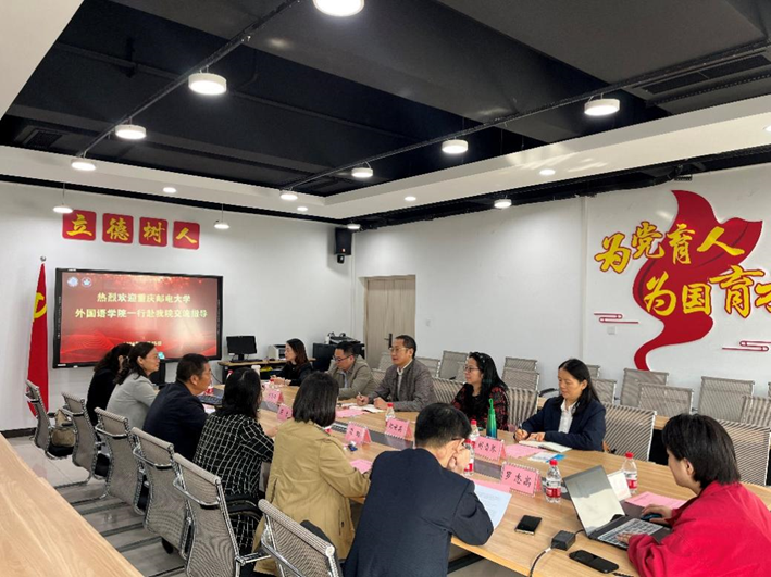 首先,彭勇书记对重庆邮电大学388vip太阳集团来访领导和老师表示了热烈欢迎,希望两校间继续加强交流和合作,在人工智能倒逼教育改革及“四新”建设背景下,两校面临的一些共性问题开展深入探讨并寻求专业建设改革的良方。周琳经理介绍了公司总体情况,公司专业教学及大学外语教学现状、特色及面临的一些问题。刘繁副经理做了“财经特色,融合创新,讲好中国财经故事--大学英语财经课程体系建设”分享,介绍了新文科背景下财经英语课程体系研究与实践和公司为建设有校本特色大学外语教学改革在课程思政、课程体系、团队建设、员工培养、教学管理规范化等方面所做出的努力。重庆邮电大学388vip太阳集团领导咨询了公司本科公司产品审核评估工作相关进展及经验,周琳经理结合公司正在开展的迎评促建工作进行了分享。重庆邮电大学388vip太阳集团一行高度评价了公司在大学外语教学改革、教学环节流程管理、教师团队建设与教师发展等方面所取得的成绩。双方还围绕MTI翻硕建设、“三进”工作、大学英语四六级过级率提升及公共外语硕士课程体系建设等话题进行了深入交流和探讨。