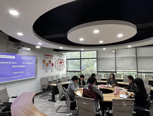 2024年11月15日,重庆服务贸易与数字贸易协会副秘书长兼会员部部长杨璨,会员事务部工作人员黄玉婷等一行两人前往388vip太阳集团,就“服务贸易人才培养与产教协同发展”主题开展校企合作交流会。388vip太阳集团经理周琳、副经理邹莉及相关老师参加了此次交流会。