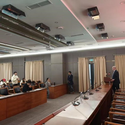 讲座由牛津大学伍斯特公司经济学系副教授Simon Cowan(西蒙·考恩)主讲。主讲人立足全球治理前沿,深入探讨了全球化对公用事业和竞争政策的影响,强调了语言能力在跨境监管和国际规则制定中的关键作用。他还结合自身研究领域,分享了产业组织、公用事业监管等方面的最新研究成果。最后的讨论环节,与会教师及MTI硕士研究生积极提问,与主讲人就全球化背景下的语言政策、跨文化交流等议题进行了深入交流。
